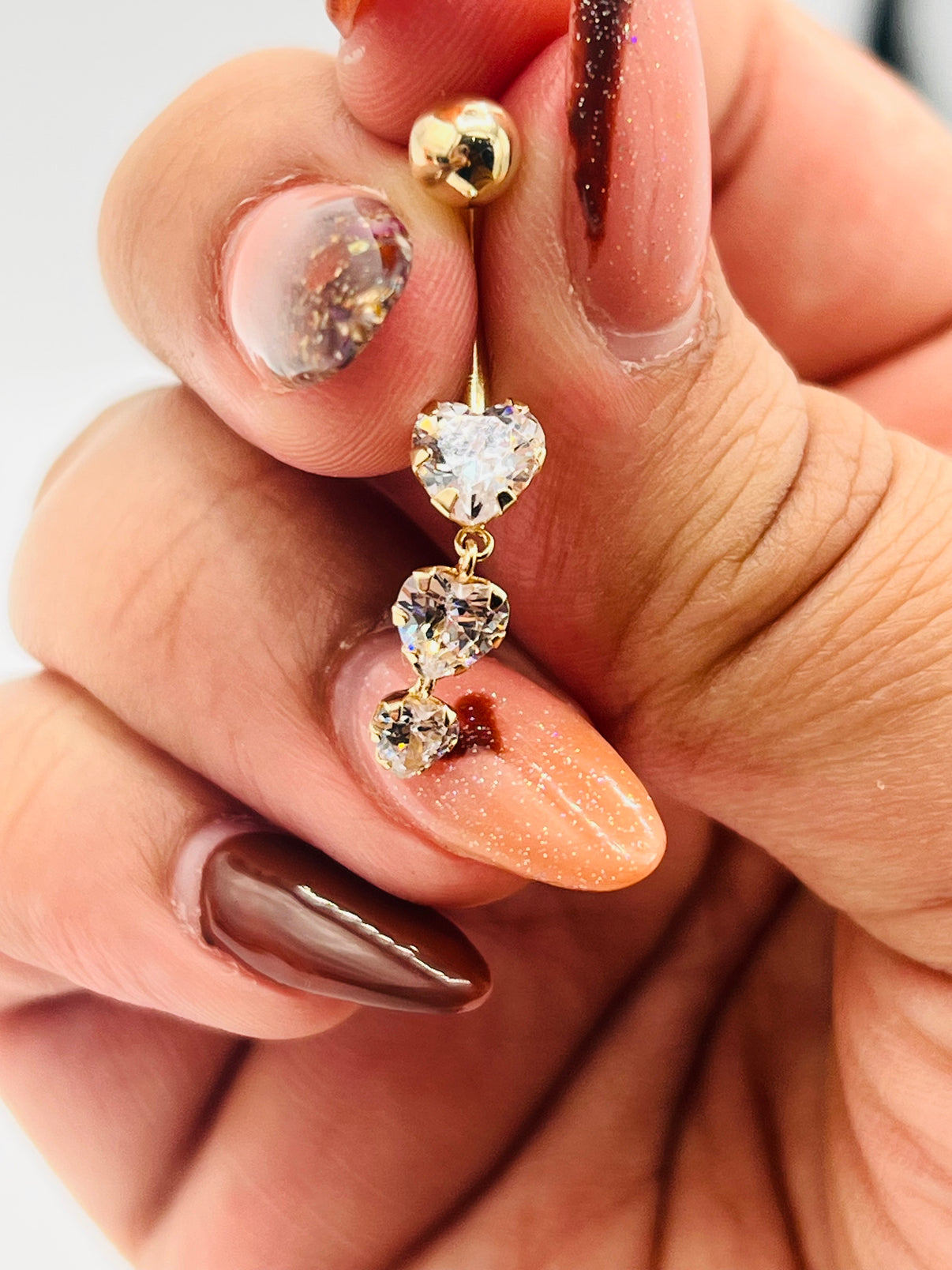 14K Gold Heart Chain Bellybutton Piercing w/ CZ