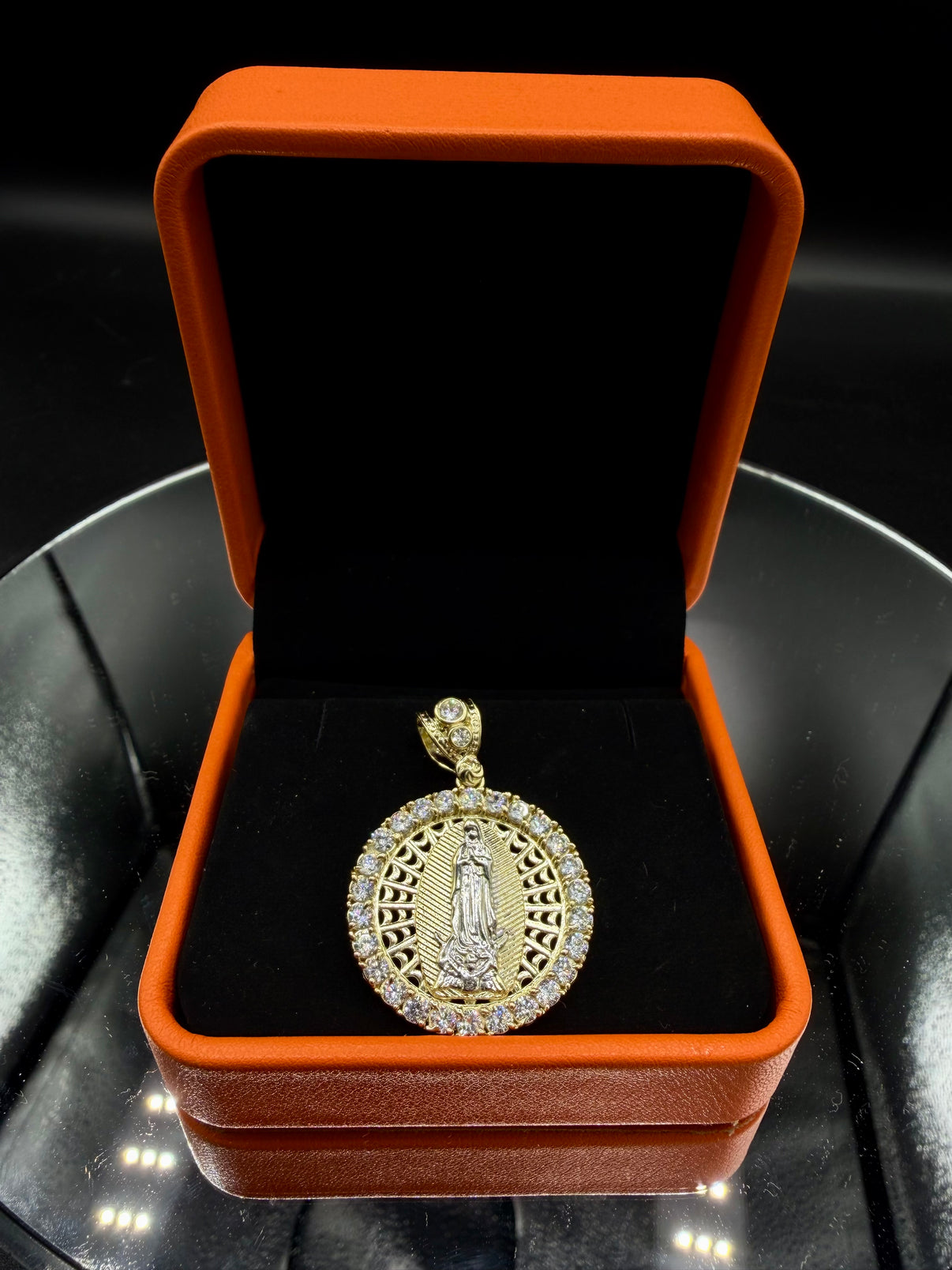 Expertly crafted with 10k gold, this pendant showcases a stunning Virgin Mary design adorned with sparkling CZ diamonds. Its religious significance and luxurious appeal make it a perfect gift for any occasion. Limited time offer, don't miss out!