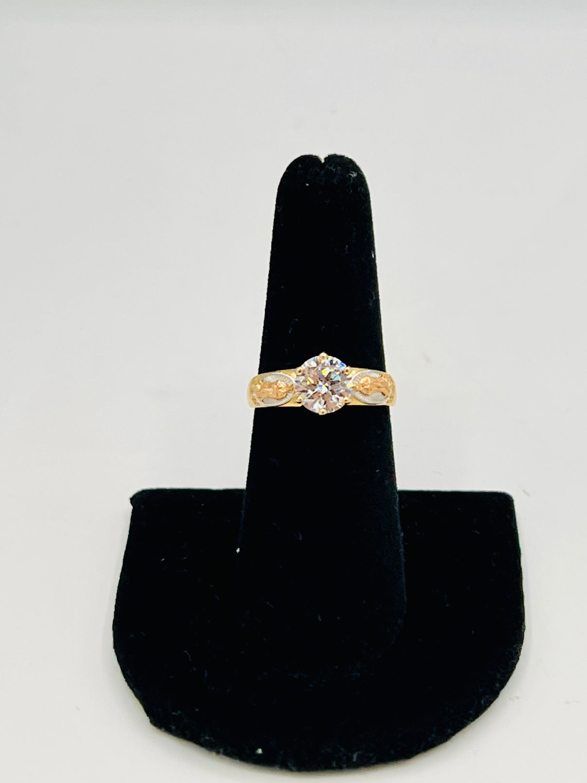 14K Gold Mother Mary Embroidered Diamond Cut Ring