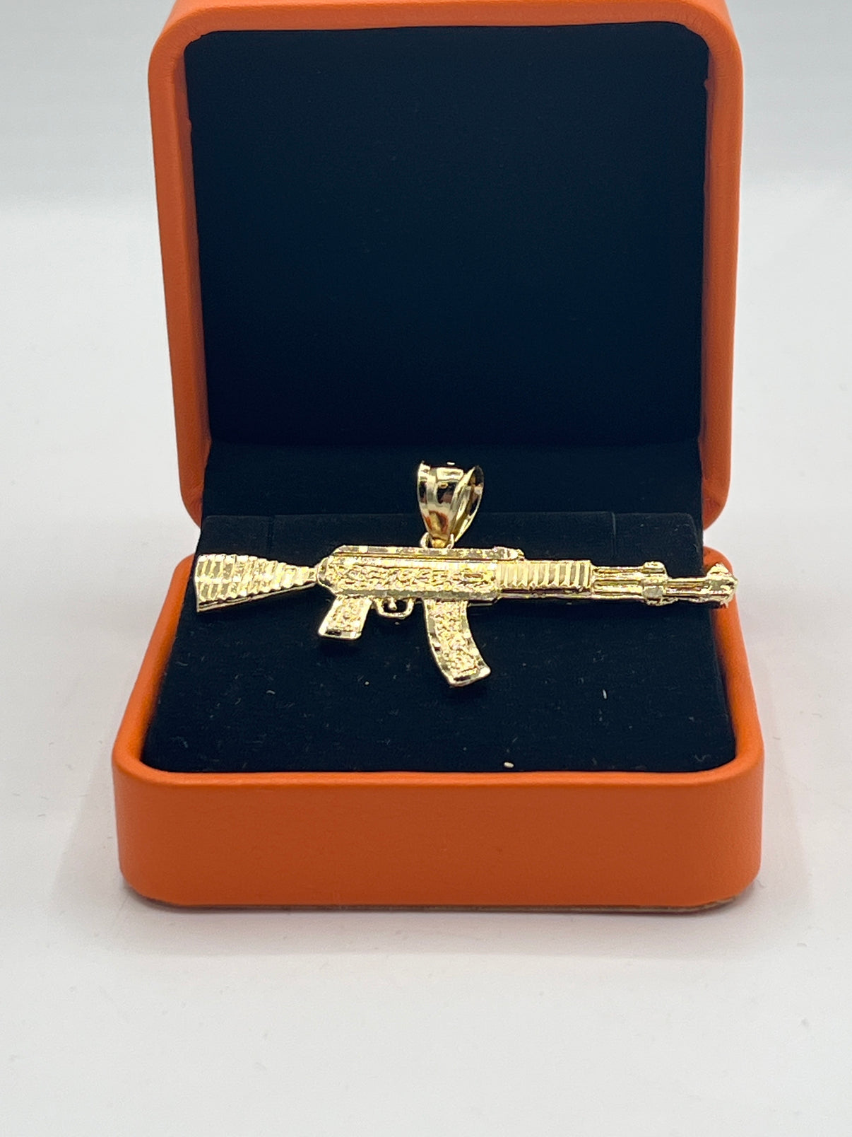 Gold Over Silver AK-47 Hip-Hop Pendant with CZ