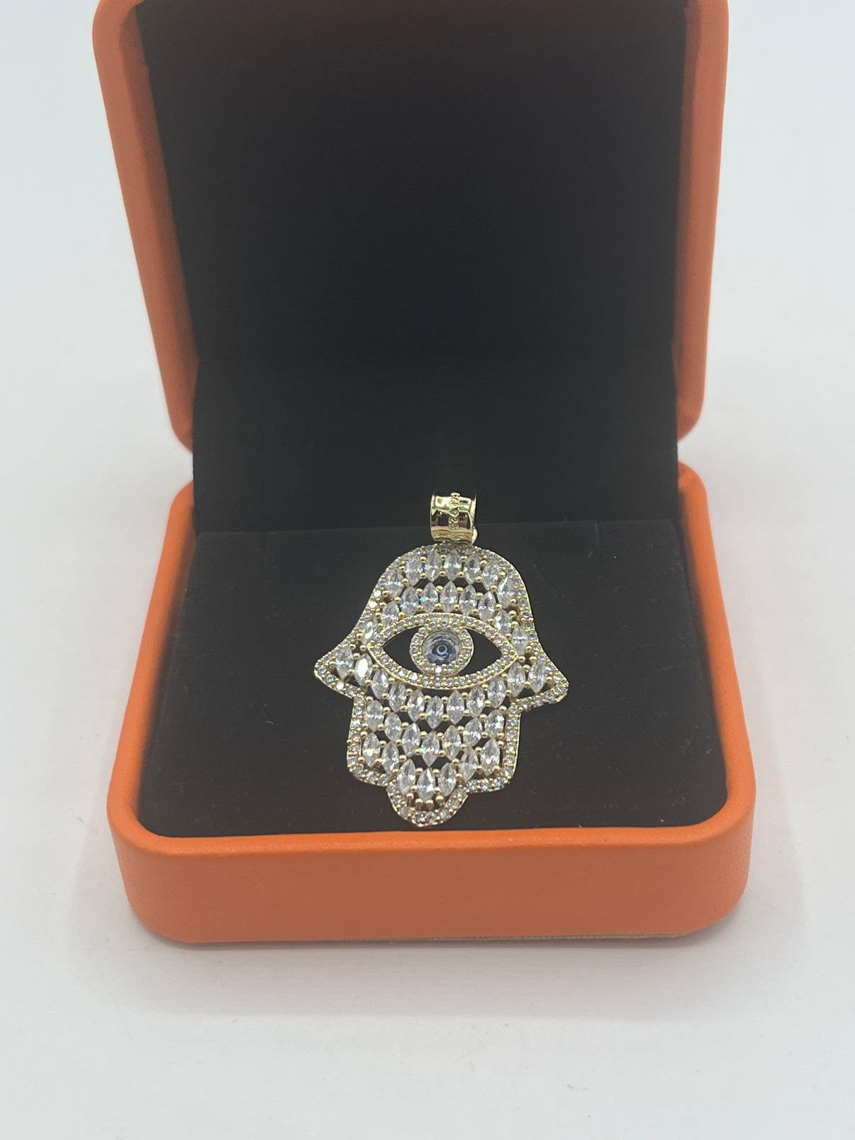 Gold Over Silver Bling Hamsa Pendant with CZ