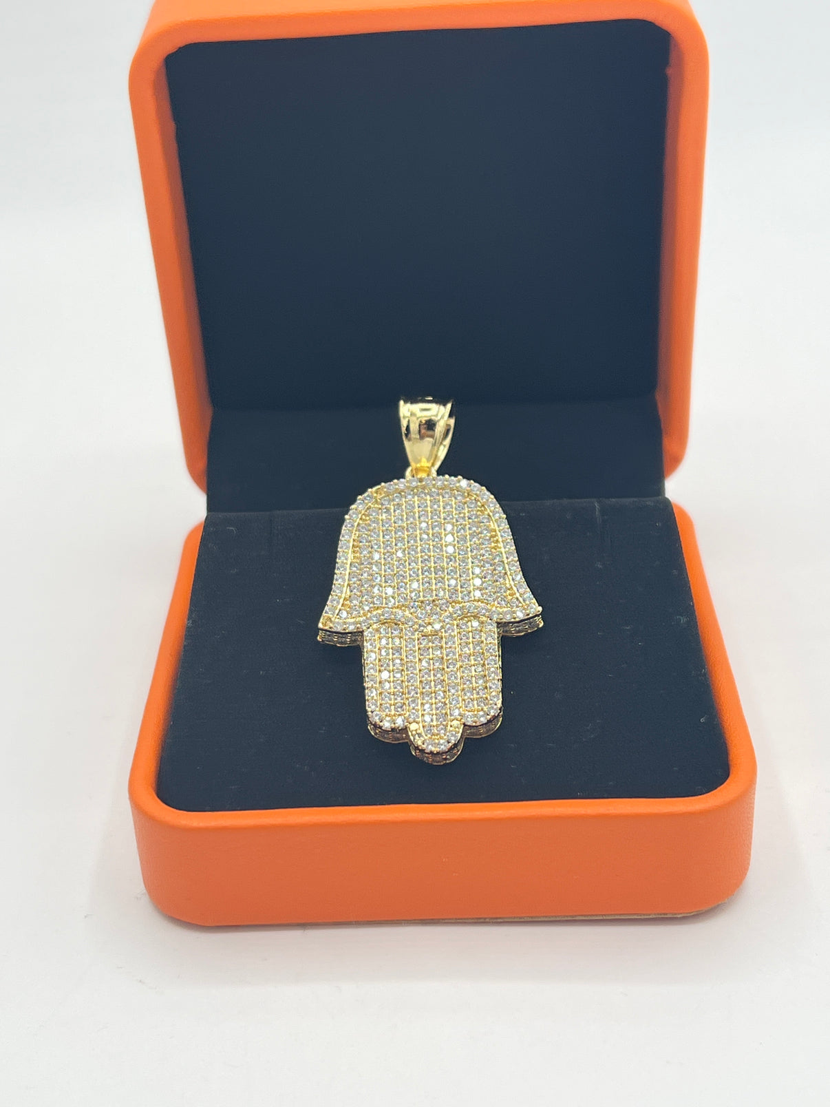 Gold Over Silver Hamsa Hand Pendant with CZ