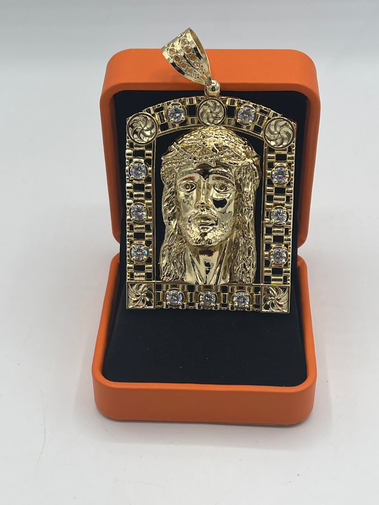Gold Over Silver Holy Trinity Jesus Framed Pendant