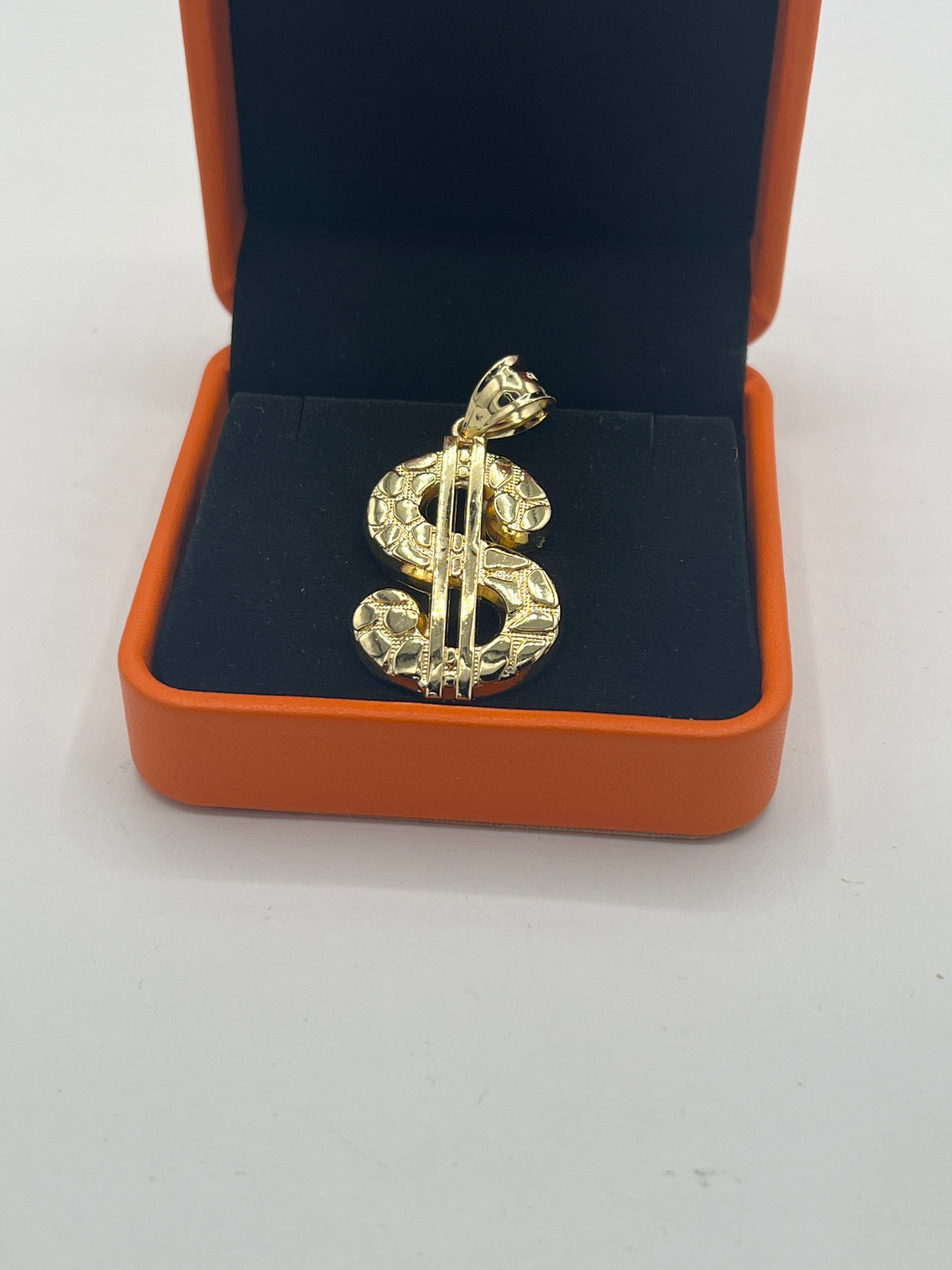 Gold Over Silver Medium Dollar Sign Hip-Hop Pendante