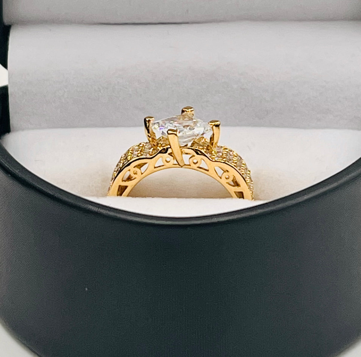 Gold Over Silver Square Cut Engagement Ring w/ CZ