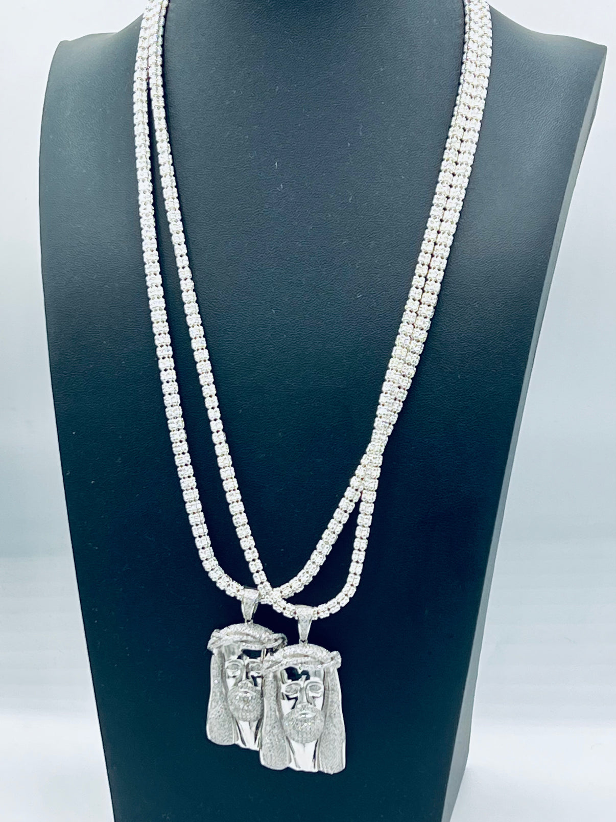 Sterling Silver White Moon Ice Chain w/ Jesus Pendant w/ CZ